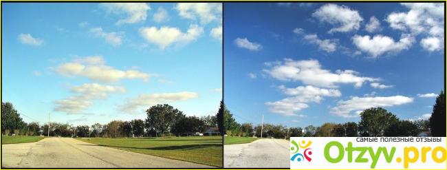 Слева фотография, которая была сделана без использования светофильтра, а справа с использованием именно Flama CPL. Как видим, разница колоссальна и заметна невооруженным глазом. На фото слева можно увидеть весьма нереалистичную желтоватую цветовую гамму, особенно это сказывается на растительности и трассе, которая освещена солнцем. Из-за ядовитого желтого оттенка картинка выглядит не очень реалистичной. При использовании же светофильтра мы получаем как раз таки то, что и видим в реальности, без каких-либо цветовых недостатков. Кроме того, значительно улучшилась насыщенность картинки. Обратите внимание на небо - насколько насыщеннее, красочнее, а главное, реалистичнее стал голубой цвет. Это также касается и других основных цветов: красного, зеленого и т. д.