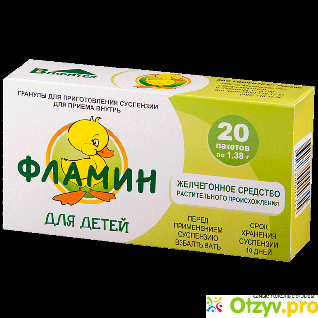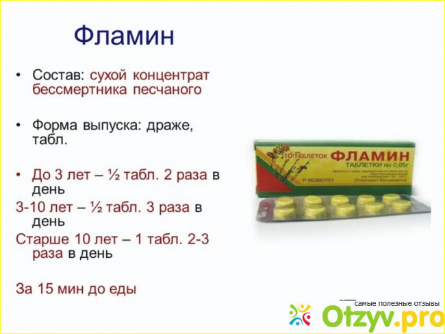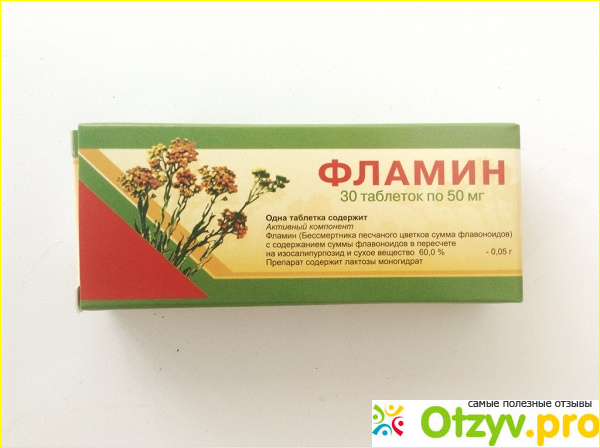 Фламин помимо того, что является желчегонным, также обладает противомикробным, противовоспалительным, а также обезболивающим средством. Эффективно способствует выведению желчи, холестерина и камней в желчном пузыре.