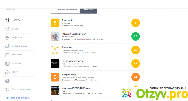 На сайте представлена правдивая и непредвзятая информация обо всех компаниях и организациях Екатеринбурга, начиная от небольших заведений общественного питания, и заканчивая крупными корпорациями. Оставлена она простыми пользователями как зарегистрированными, в число которых вхожу и я сам, так и людьми, просто заходящими на страницы ресурса в поисках интересующей их информации, по поводу того, или иного объекта. Кроме этого, к нему привязано без малого 13000 бизнес-аккаунтов, так же предоставляющих свои полные, или частичные данные, информацию, что делает возможной «прогулку по городу», даже не покидая квартиры.
