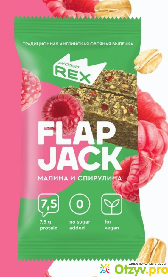 С недавнего времени я отказалась от сладкого и мучного и перешла на правильное питание. Но есть что-то с чаем надо и я увидела овсяные протеиновые печенья без сахара Флэпджек со вкусом малина-спирулина от известного Protein Rex.