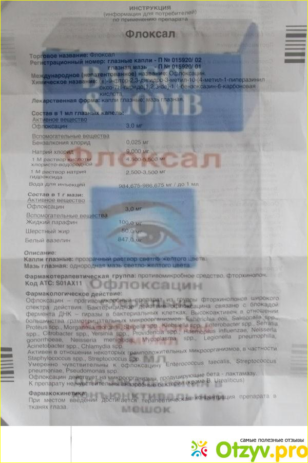 Флоксал состоит из антибиотика офлоксацин, который эффективно помогает от бактерий, вызывающих конъюнктивит, язву роговицы, блефарит, кератит и хламидийные инфекции глаз.