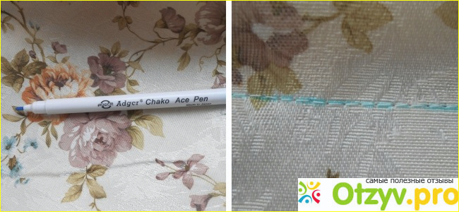 Признаюсь, первый раз я опасалась, не останутся ли чернила на ткани, поэтому взяла маленький отрез старенькой материи и провела линию, затем сделала по ней строчку. После этого приступила к самому интересному - взяла пульверизатор с водой, которым обычно обрызгиваю свои комнатные цветочки, и распылила струю воды на ткань. Черта, проведенная фломастером, стала исчезать буквально на глазах, будто ее никогда и не было. Так я проверила все четыре моих фломастера, убедилась, что все они чертят хорошо заметную полоску, а потом исчезают под воздействием воды. После этого я уже стала смело использовать Фломастеры смываемые Adgcr для раскроя на ткани самых различных деталей и переноски на ткань рисунка, который хотела вышить или простегать.