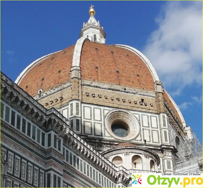 Пройдем буквально несколько минут пешком и окажемся в самом сердце города – на площади у знаменитого собора Санта-Мария-дель-Фьоре (Дуомо) – кафедрального собора Флоренции. Собор строился в течение двух столетий известными архитекторами эпохи и был завершен великим мастером XV века Брунеллески, воздвигнувшим его гигантский купол, аналогов которому не существовало до того времени. Эмилио де Фабрис в конце XIX века произвел мраморную облицовку фасада собора.