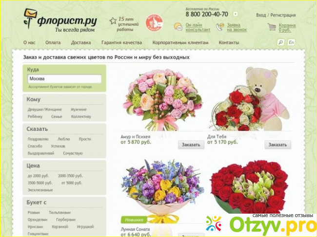 Приветствую всех читателей моего очередного отзыва. В нем я хочу рассказать о доставке цветов, компании флорист точка ру.