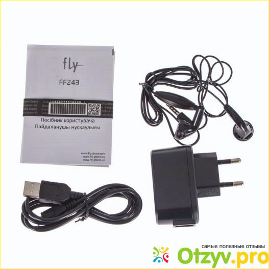 Со стороны за ней было так интересно наблюдать, когда она одевала наушники, слушала музыку и была довольна, совершенно не соответствуя своему возрасту и строгости. Но спустя неделю, она пришла расстроенная, оказалось, что наш подарок, она уронила в унитаз, а соответственно смысла ремонтировать не было. Конечно же это не приятно, ведь несмотря на то, что цена на него бюджетная, деньги нам просто так не даются, тем более у нас семья не маленькая. Но самое интересное в этом было то, что она заявила, чтобы мы ей опять купили смартфон, потому как без него, она уже не может. Вот для меня это был шок и наглость первой степени, но я промолчала. Благо мой муж, ей всё объяснил и она успокоилась. Через несколько дней, у него в машине, я обнаружила коробку, на которой был нарисован мобильный телефон, но только кнопочный, оказывается муж купил для мамы, потому как ей нужна связь. Но я его конечно поняла, да и тем более это был обычный телефон, как раз для связи, забрала я коробку домой и забыла отдать свекрови. Когда я о нём вспомнила, решила посмотреть, что он вообще из себя представляет, модель - Fly FF243, в белом цвете. Коробка, в которой он находился, обычная, картонная, белого цвета, на ней нарисован гаджет и все его основные функции. В комплекте всё как обычно, а именно: сам мобильный телефон, блок зарядного устройства, аккумулятор, кабель микро-юсб, гарнитура, совершенно обычная, конечно же инструкция и гарантийный талон.