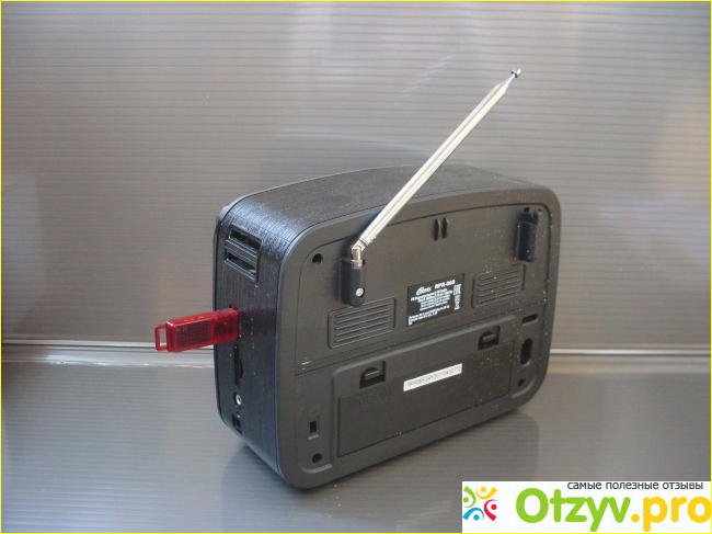 Есть еще и шнур для работы от розетки. Радио с ручной шкальной регулировкой, но с расширенным в сторону УКВ диапазоном. Про чувствительность не скажу, но в городе ловит все и без помех. Проигрыватель MP-3 музыки осуществим с двух видов флэшек. Запоминание последнего игравшего трэка, то есть, возобновляет после отключения. Неплохой, но с одним светодиодом, фонарик, который портит вид, однако же со своей функцией справляется. Динамик присутствует лишь один. Мощность его Ватта на три, зато без хрипов и гудений. Для кухни/ванной вполне сойдет. Подсветка, почему-то, синяя, и с классикой не сочитается (надо бы пожелтее впиндюрить). Вместо ручки для переноски съемный нейлоновый ремень - эт, значит, чтоб на плече как сумку носить.