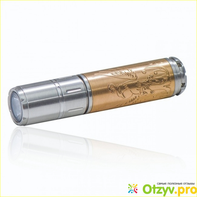 Теперь о внешнем виде самого фонаря. Тут придраться не к чему. Сочетание серебряного и золотистого цвета выглядит презентабельно и солидно. На золотистой части фонаря вытеснен феникс. Использован именно рельеф, не гравировка. Рисунок, на мой взгляд, можно было сделать и поагрессивнее, какой-то слишком детский у художника получился феникс.