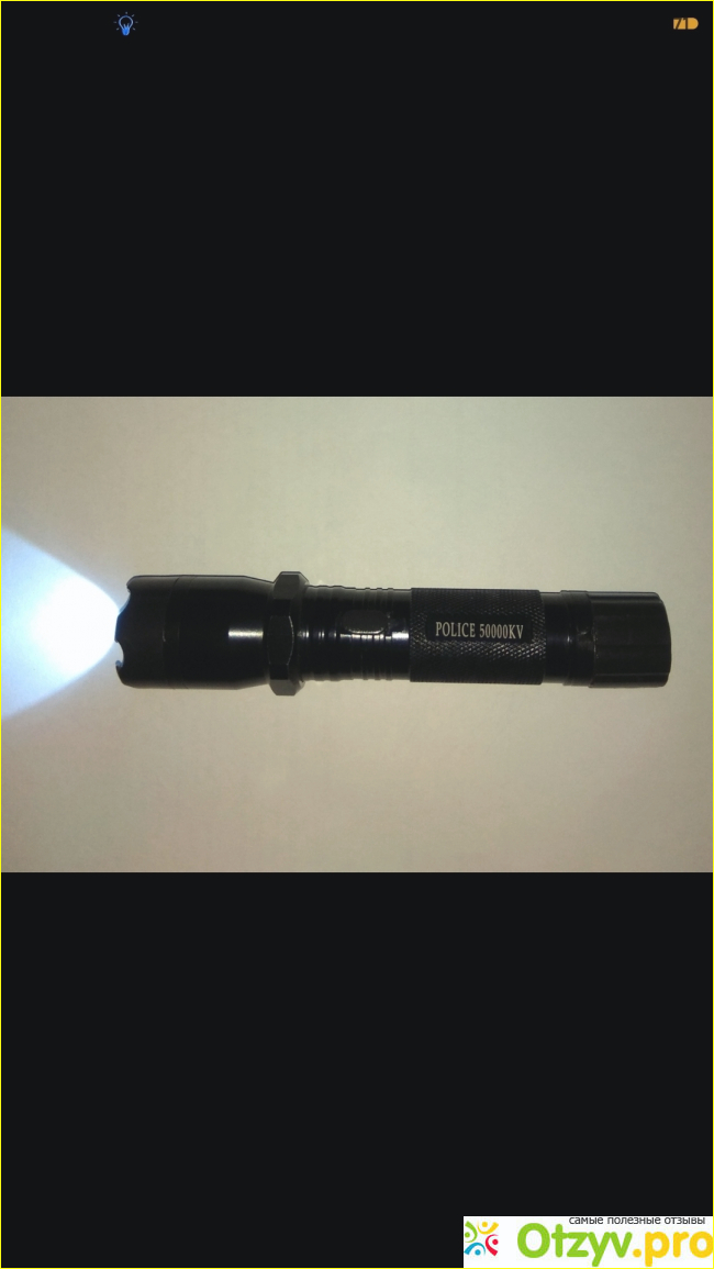 Влип я короче говоря. Но к счастью не подалёку я обнаружил "Рыболовный магазин". Заскочил туда. Там я увидел один интересный вариант. Это был металлический, добротный и самое главное что очень яркий фонарик. То что надо! Стоил он тысячу рублей. В общем купил я эту прикольную штуковину. Сделал свои дела и благополучно добрался до дома. Утро я начал с изучения этого интересного предмета. Фонарик был исполнен в прочном металлическом корпусе чёрного цвета, а с тыльной стороны я заметил маленький переключатель. Я его сдвинул и нажал на кнопку. И как он вдруг затрещит. Я чуть не ..." Испугался". Продавщица даже не предупредила меня, что это был не простой фонарик, а ещё и ШОКЕР. Она видимо и сама не знала об этом. Но это меня только обрадовало! Только вот шокер мне не особо то нужен, а вот моей жене он просто необходим. Я так думал, потомучто она дико боится собак, а те в свою очередь чувствуя это, нападают на неё . даже самые маленькие собачушки и те неупускали случая, цапнуть её за пятку. В общем беда. Вот я ей его и подарил этим же утром. Подробно ей объяснил как это всё работает. Она конечно же очень обрадовалась моему необычному подарку, но не на долго. Однажды она придя с работы, полезла в свою сумочку за кошельком, а там трещит этот шокер. Напугалась моя блондинка и заставила меня его от туда достать и вообще забрать его себе. Ну если блондинка, что тут поделаешь. Я ей опять начал что-то обьяснять– что там есть специальный предохранитель, что его нужно там выключать... Конечно она и слушать не хочет. Ну и ладно. Но в целом вещица неплохая, главное что сам фонарь очень яркий и заряд долго держит. Габариты небольшие, в кармане легко вмещается. Главное не забывать ставить на предохранитель, а то шибанёт ненароком