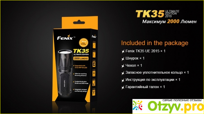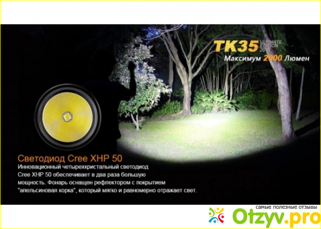 До места добрался примерно к вечеру, уже начинало темнеть. Благо на берегу реки было место, где можно поставить палатку. К ночи я уже разбил лагерь вдоль берега. После решил пойти по забрасывать ловушки на рака и поставить донки. Авось, что клюнет, за ночь, подумал я. Так как было уже довольно темно, я решил прихватить фонарик, без него было ни как. Пока я возился с этими ловушками, мой туристический фонарик просто сел, а заряжать его от автомобиля нельзя. Так я и остался на всю ночь без фонаря. Хорошо, что я успел поставить все ловушки. Днем я порыбачил на удочку и к вечеру следующего дня поехал домой. После этого инцидента стал вопрос о покупке нового, который можно подзаряжать от прикуривателя авто и сменными аккумуляторами. Благо в наших магазинах выбор был и не маленький. В одном из магазинов, мне предложили именно эту модель- Fenix TK35 UE XHP 50. Консультант так его разрекламировал, что я не смог его не взять. Теперь давайте подробнее познакомимся с фонариком.