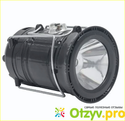 Сам фонарь имеет удобную ручку для переноски, за которую его можно подвешивать в удобное место или просто носить в руке. В комплекте идет шнур для зарядки аккумулятора. Если раздвинуть и потянуть скобки, то его можно раздвинуть, получив настольный или подвесной светильник. Освещение при этом достаточное для того, чтобы сделать палатку или место возле нее довольно светлым. Снизу имеется линза, с помощью которой лампа превращается в фонарик. Включение и выключение фонарика происходит удобной кнопкой на торце. В режиме фонарика светит заметно ярче, чем, когда в виде лампы. Заряжать от розетки его необходимо несколько часов. Имеется и альтернативный источник зарядки солнечная батарея, но она очень маленькая, поэтому толку от нее практически нет.