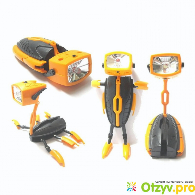 - удобно складывается - все 6 ножек и голова этого маленького фонарика роботизированного типа-трансформера можно сложить, чтобы получился обычный фонарик. Головка изделия также находится на выдвижной «шее», что позволяет использовать фонарик без помощи рук, чтобы вы могли сосредоточиться на работе.