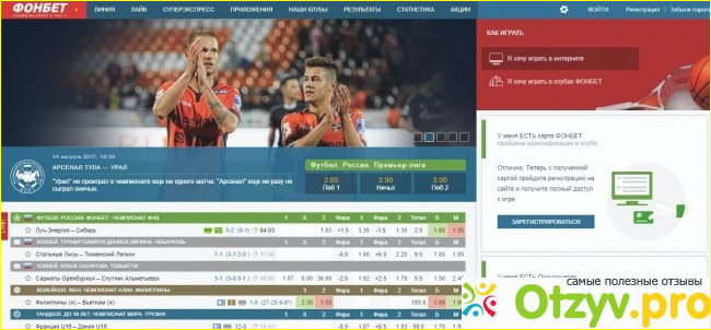 Сайт Фонбета очень удобный, классные коэффициенты, у меня друг и по сегодня ставит экспресс-ставки и делает хороший задел, в плане выплат никаких вопросов, в первый раз придрались к документам, но потом уже к этому делу он не возвращался. Также на сайте можно смотреть прямые трансляции некоторых событий, поэтому можно пользоваться им еще для этих целей.