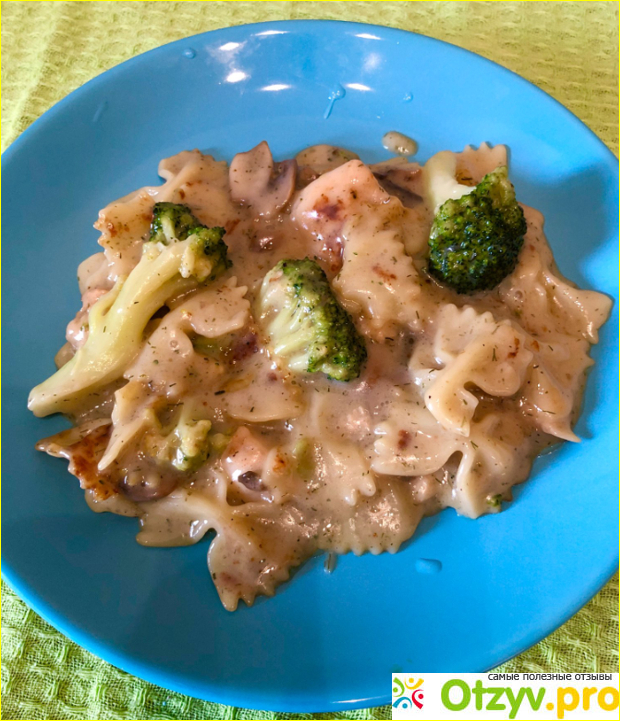 Соуса получилось много и мне это понравилось. Блюдо абсолютно не скучное. Вкусная паста с курицей, овощами и сырным соусом. Очень классный аромат, нормальный внешний вид.