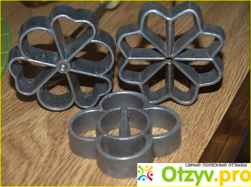 Они выпускаются в ассортименте и имеют разный вид: в виде цветка, вафли, бабочки, или звездочки на конце длинного металлического прута. Длина ручки комфортная - 22 см. Высота фигурной формы, которая опускается в тесто - около 1 см.