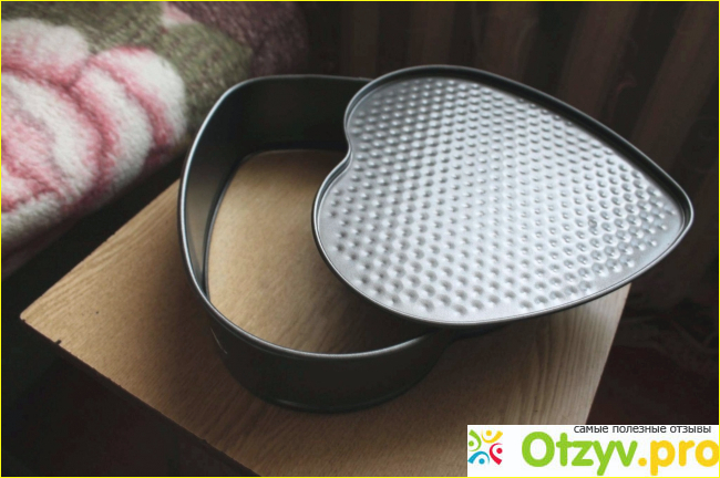 Форма в виде сердца выглядит оригинально, она разъемная, так как у нее рельефное дно, а также основной каркас. Готовая выпечка может быть извлечена простым изъятием, простыми движениями.