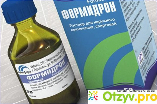 Кстати, имейте ввиду, что Формидрон вовсе не так безобиден, как может показаться на первый неосведомленный взгляд, ведь в его составе присутствует вещество формальдегид. Все-таки это как-никак клеточный яд, хоть и разбавленный, поэтому будьте с ним поосторожнее! Вещество может сильно сушить кожу, оставлять раздражение и даже реакции местной аллергии! Если не пробовали это средство раньше, имеет смысл сначала протестировать его на маленьком участке кожи.