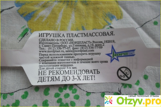 На этой этикетке не указан состав игрушек, но внутри была еще небольшая этикетка, всмысле в упаковке с игрушками, там было указано, что формочки сделаны из полипропилена, я он нем тоже очень много знаю, поэтому доверяю всегда этому материалу, у нас много игрушек из него уже дома.