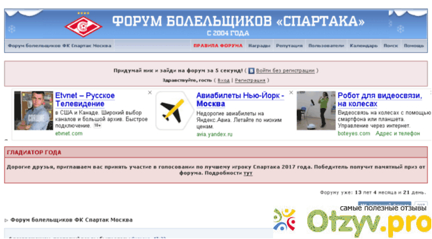 Пролистал я весь форум и заметил, что общаются они в основном между собой с целью обсуждения игр и как обычно эти банальные фразы, что Спартак непобедим, но как только их команда с позором заканчивает матч, то сразу начинается, что мол ошибки случаются у каждого, только вот где их непобедимость. Очень много спама разводят на форуме, не зря они СПАртак Москва. Никаких интересных тем для обсуждения на их форуме я не нашел, хотя бы могли какие-нибудь конкурсы администраторы и модераторы проводить для своих пользователей, потому что активность у них на форуме не предпочтительная.