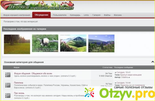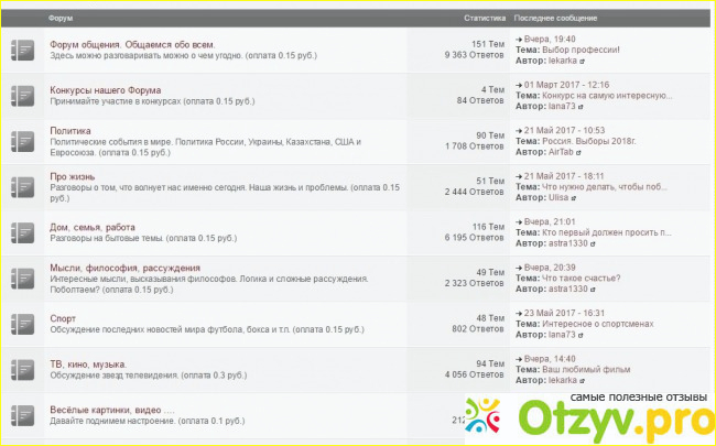 Темы на форуме самые разные, есть о заработке в сети интернет, также есть о жизни, семье, кино, искусстве и многом другом. На форуме интересно.