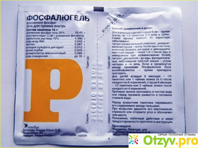 Данное средство представляет собой гель, в упаковке 20 саше с 16 грамм активного вещества, а именно фосфат алюминия гель. Довольно приятный на вкус и запах за счет содержания в гели апельсинового ароматизатора. Назначают данное средство как взрослым, так и детям любых возрастов и выписывается без рецепта врача. Советую вам не отходить от правил, которые прописаны в инструкции по применению, и особо нужно уделить лечению детей. Если вашему ребенку еще нет 6 лет, тогда после каждого приема пищи ему нужно давать по половине чайной ложки средства, если же вашему ребенку более 6 лет, то надо давать по чайной ложке. Взрослым я советую по одному пакетику три раза в сутки использовать, можно в чистом виде или разбавлять в воде.
