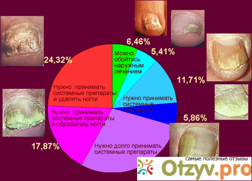 На фото выше показала, как выглядят больные ногти, и с чего все начинается, и до какого состояния может дойти. Так же напротив фото представлено в процентах, на сколько идет разрушение ногтя.