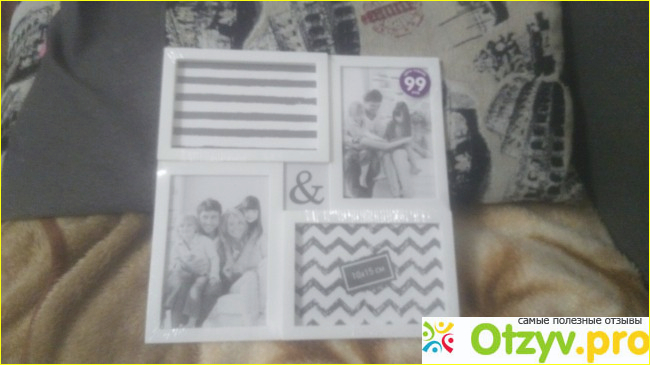 Смотрится рамка ну никак. Материал посредственный пластик, упадет если, то с большой вероятностью треснет или отломается от нее кусок. Конечно и стоимость небольшая, но я не хотела просто выбросить деньги на ветер. Жалею что не взяла другую, обычно одинарную деревянную. Фото причем бликуют, проходишь мимо и видишь только часть фото и обзор зависит от того в какой части комнаты ты находишься.