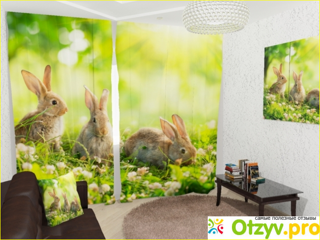 Потом я решила подобрать шторы в комнату к сыну. Очень долго подбирала рисунок. Так как ребенок не взрослый, то я хотела купить шторы с детской тематикой. Но ни один из рисунков мне не понравился. Поэтому я решила выбрать что-то с тематикой животных. Там уже было довольно много разных вариантов и я решила остановиться на шторах под названием "Кролики". Во-первых у них довольно приятная салатовая расцветка, а во-вторых эти шторы на мой взгляд просто отлично вписываются в детскую комнату.