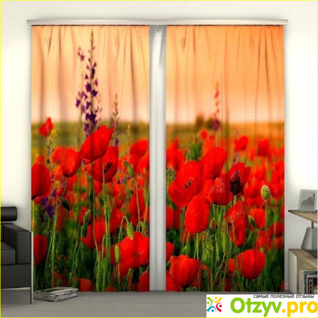 Фотошторы Алые маки от компании Сирень — это две портьеры с фотопечатью, выполненные из качественного 100% полиэстера.