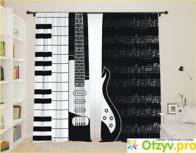 Эти шторы мы купили в подарок нашей дочке и повесили их в день ее рожденья, пока она спала. Не передать словами восторг, когда она проснулась и увидела сюрприз — шторы, с изображением ее любимого музыкального инструмента — электрической гитары. А главное, выполнены в стильном дизайне.