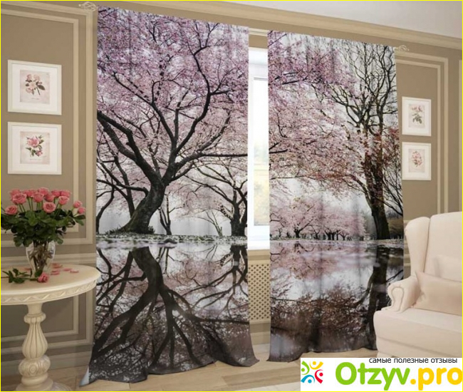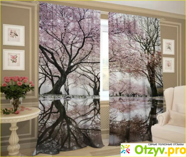 Если за вашим окном унылый пейзаж, то есть хороший выход — повесить фотошторы. Серые улицы с их грязными помойками сразу пропадут, а на из месте распустятся нежные уточненные сакуры.