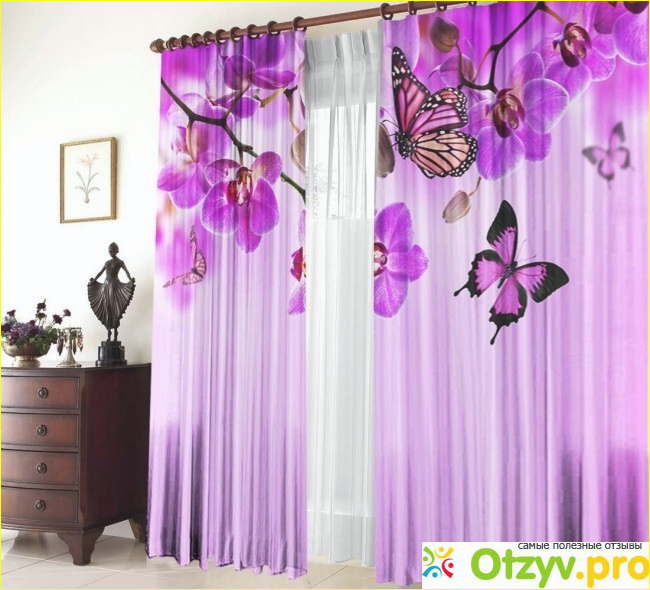 На правом полотне фотошторы имеется яркая и заметная бабочка, на левой стороне фотошторы - чуть менее заметная. Они украшают полотно, оживляют его, навевая мысли о весне, теплой и благоухающей.