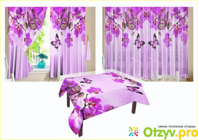 Так, наверху и внизу фотоштор можно заметить достаточно яркий фиолетовый цвет, но в центральной части фотоштор он, словно, разбелен, благодаря чему не смотрится ярко и слишком динамично.