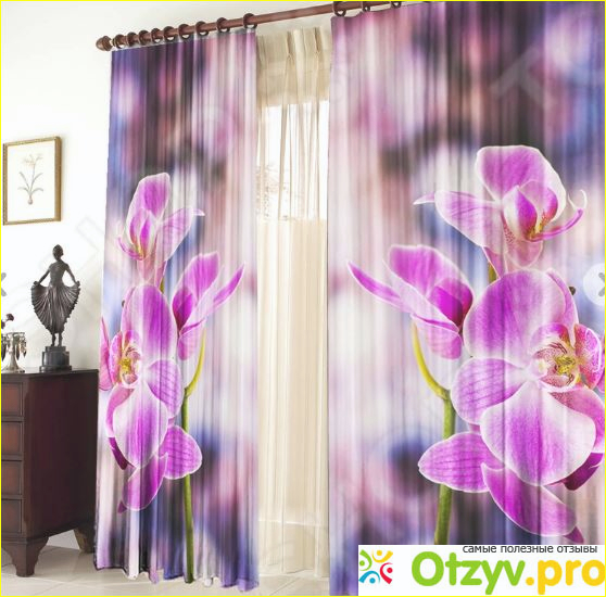 В общем, за такими шторами требуется такой же уход как за любой другой синтетической тканью. Поверхность у них гладкая и приятная на ощупь. Имеет легкую, пластичную структуру, поэтому хорошо приспособлена для драпировки. Фактически не выгорает на солнце и не теряет свой привлекательный вид даже после частых стирок. Так что модель однозначно заслуживает вашего внимания, если вы конечно любительница орхидей и розовых оттенков как я)).