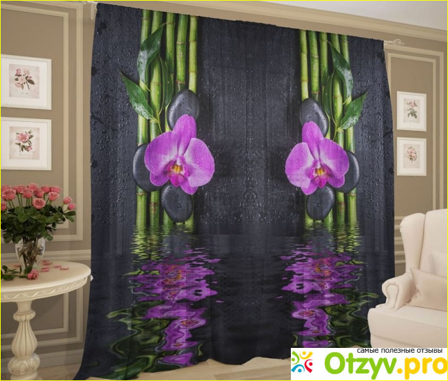 Когда я хотела приобрести себе фото-штору, очень быстро нашла в интернете такие изделия от компании «ТамиТекс». Изучив продукцию данной фирмы и убедившись в её надежности, я выписала фото-шторы «Орхидея». Шторы выполнены из габардина и прекрасно вписываются в окно, как спальни, так и гостиной. Цветовая палитра у штор с ярко выраженным розовым оттенком, при свете выглядят очень мягко без аляповатых красок. В задёрнутом состоянии неизменно притягивают к себе взгляд. Многих людей розовые оттенки могут раздражать, но мне они нравятся. Дизайнерское решение фотопечати выглядит классическим и не раздражает глаза.