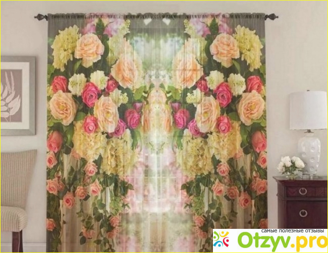 Если смотреть просто на фотографию штор, то все равно, не сможешь ощутить то, насколько рисунок красивый и глубокий. Когда видишь сами шторы, то можно подумать, что это реальны цветы, на столько они реально нанесены на ткань. Розы, которые изображены на шторах, словно растут в комнате и вьются вокруг окна.