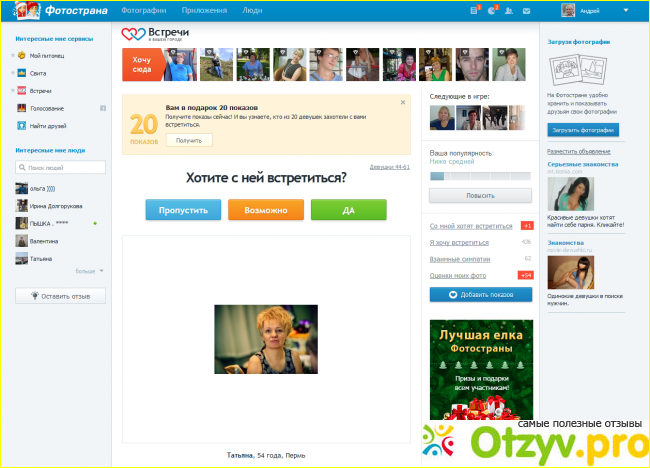 Совершеннопотрясающийресурс, оченьудобнопользоваться, мнеоченьнравится. Ялегконашламногоновыхдрузейскоторымипостояннообщаюсь, идажесмогланайтисвоюлюбовь2годаназад. Частоучаствуемвфотоконкурсах, оченьнравится.