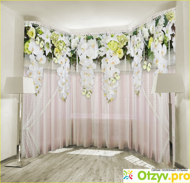 Комплект представляет собой три полотна тюля с фотопечатью — это богатейшая возможность оформить интерьер различными способами.