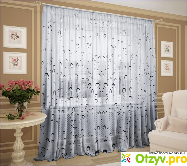 Если вы переживаете, что такой тюль может внести грусть в дизайн вашей комнаты, замечу, что лишь самую малость. Скорее, легкую нотку отдаленной грустинки, не больше, и то — в случае, если вы когда-то как и я гуляли под дождем и тосковали об ушедшей любви...