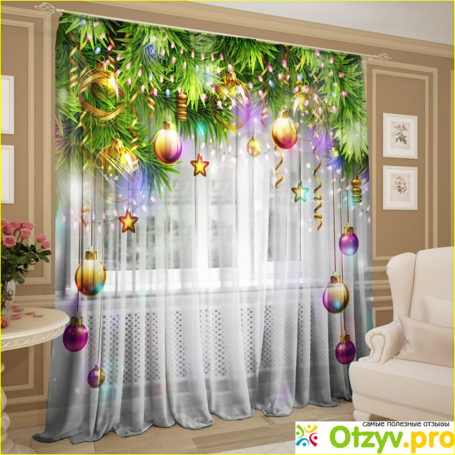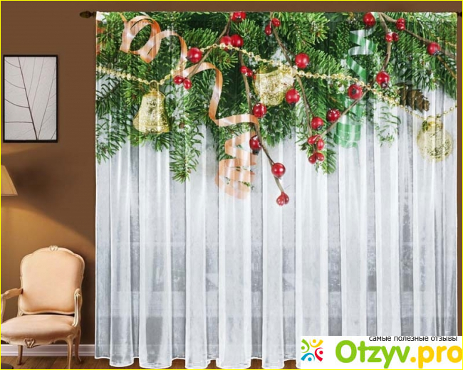Новогодние предметы декора всегда вносят в интерьер комнаты праздничное ощущение. Однако, Фототюль ТамиТекс Новогодние — это уже готовое решение, которое не просто привнесет в дизайн интерьера праздничный аромат настроения, а попросту создаст его!