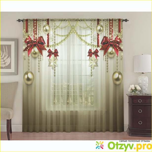 Фототюль Украшение сможет стать действительно идеальным дополнением к новогоднему декору. Шторы изготовлены из тканы высокого качества, а печать на них имеет очень красивые и яркие цвета. Благодаря таким преимуществам, такое изделие сможет отлично подойти почти под любой интерьер, сделают вашу комнату более светлой и просторней. Данная модель изготовлена из красивого шифона, который является легкой и воздушной тканью. Этот материал является многогранным и достаточно податливым, также он великолепно смотрится в таких изделиях и оформлении интерьеров.