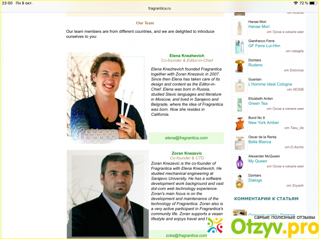 Мне очень нравится сайт своим описанием ароматов, то, что о каждом аромате можно найти информацию (Год выпуска, пирамиду, звучание) и почитать отзывы под ним.