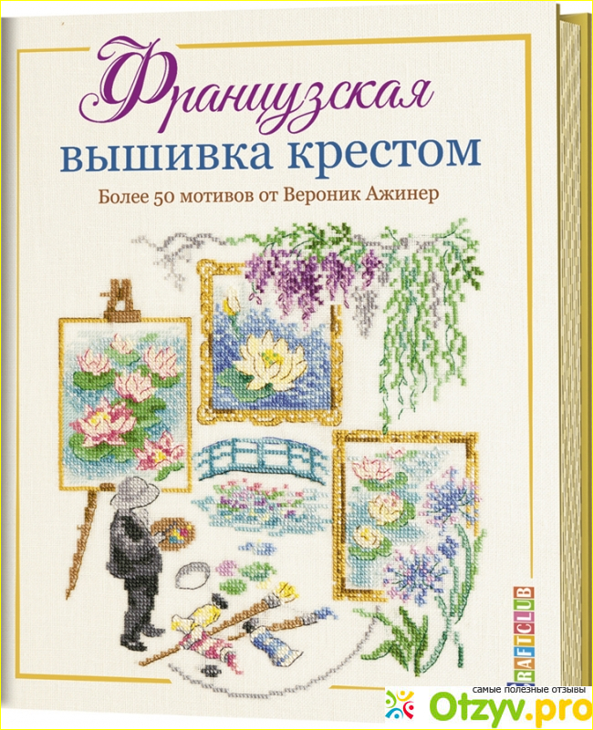 С практикой, мне захотелось больше действовать самостоятельно. Я начала покупать канву, мулине, искать схемы, и творить. Для того, чтобы больше узнавать о любимом хобби я начала смотреть тематические видео и читать книги. Таким образом, мне удалось улучшить свою технику, крестики стали более аккуратными и с хорошей натяжкой. На озоне я увидела книгу Французская вышивка крестом по акционной цене. И купила. Вероник Ажинер известна во всем мире вышивальщиц, она знаменита своей любовью к необычным дизайнам и в своей книге собрала интересные, и довольно простые в оформлении схемы с оригинальными сюжетами, которые понравятся большинству из женской аудитории.