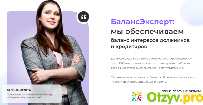 Но, для нас самое главное на сегодня – это все-таки правильно провести процедуру банкротства, и именно поэтому нам как нельзя кстати поможет компания “Баланс Эксперт”. Компания «Баланс Эксперт» оказывает профессиональную юридическую помощь физическим и юридическим лицам. Почему клиенты выбирают«Баланс Эксперт»? Потому что они запускают процедуру банкротства уже в течение одной недели, когда у других конкурентов она может затягиваться на долгие месяца. Они защищают права как самого должника, но и не забывают про кредиторов.