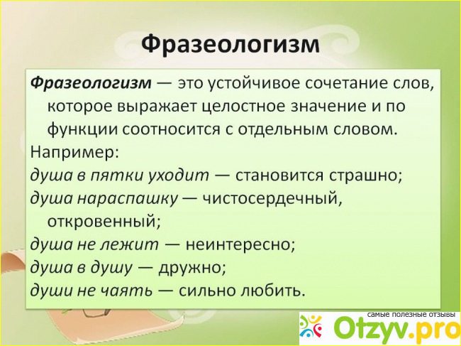 Фразеологизм, — свойственное только данному , отдельно взятому языку. языку устойчивое сочетание слов, значение которого не определяется значением входящих в него слов, взятых, каждое, по отдельности. Из-за того, что общий смысл фразы не передает смысла отдельных слов, фразеологизмы часто неправильно воспринимаются людьми ограниченными, а также иностранцами.