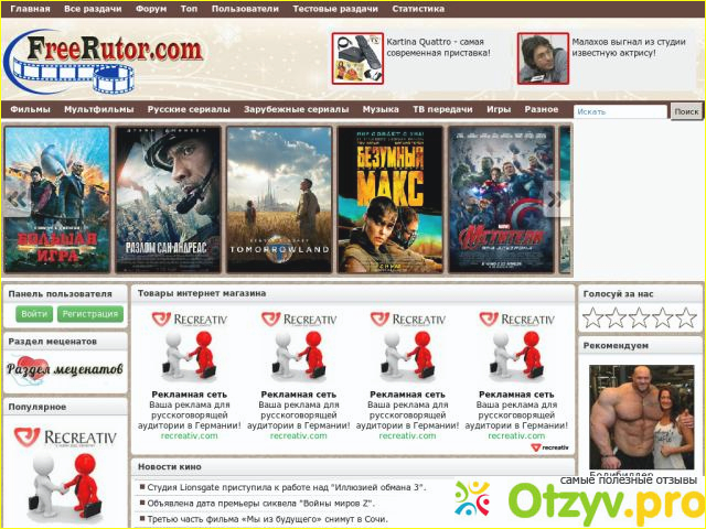 Краткий вердикт: сайт хороший, рекламы по минимуму, фильмы появляются быстро и в хорошем качестве, вирусов не раздают, скачивание бесплатное. Активно пользуюсь ресурсом Freerutor.com и вам советую :)