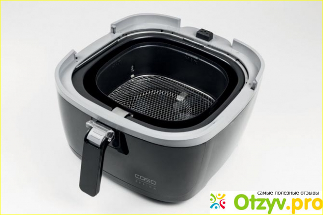 Устройство это очень мощное, мощность составляет 2 киловатта, таким образом если сюда закладываешь продукты, то пропекаются они очень быстро. До этого у нас присутствовали классические аэрогрили, которые имели большие чаши, они казались нам пределом совершенства. Однако эта фритюрница запросто их сделала, по скорости выигрывает 100%, и по вкусовым качествам тоже. После готовки можно легко разобрать и помыть, и конечно это сделать нужно как можно быстрее, потому что потом может жир заполимеризоваться и высохнуть. Можно снять донную стальную решетку, что является очень удобным вариантом. Чаша и боковые стенки лотка покрыты антипригарным материалом. Достаточно удивила нас также функциональность, мы ожидали намного более скромного устройство, думали что только обойдётся зажаркой картошки фри.