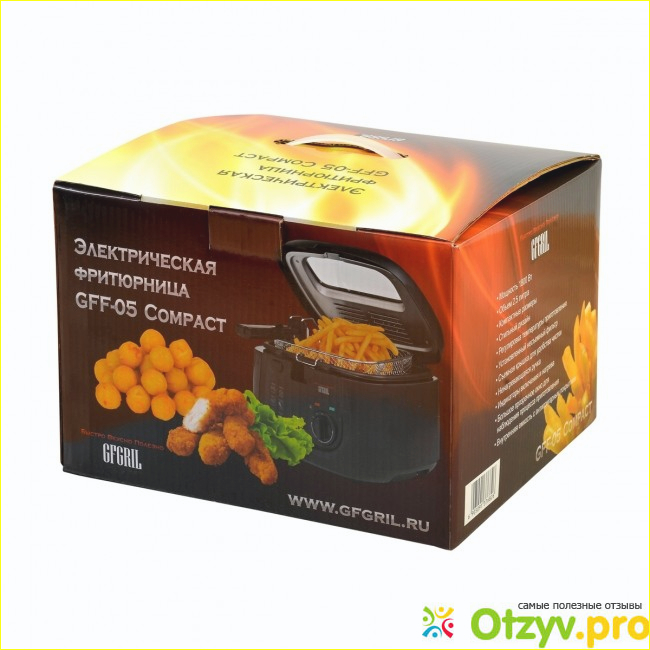 По этому я не стала слишком долго думать и купила ее себе, а называется эта фритюрница GFGRIL GFF-05 Compact. Свое такое название она получила совершенно не случайно, так как по размерам она действительно удобная и компактная, но не смотря на это позволяет готовить совсем не мало. Так чтобы нам хватило на всю семью и даже осталось не много для гостей.