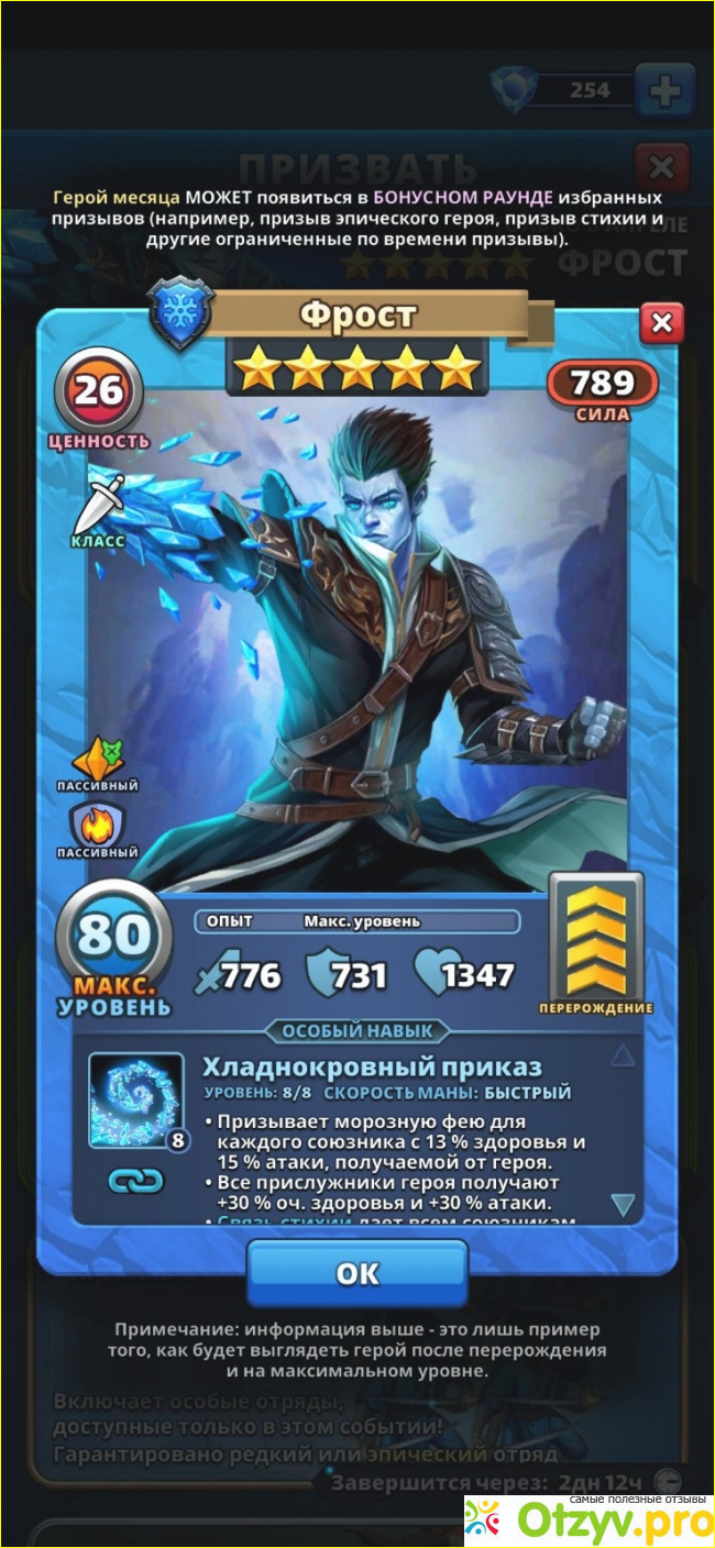 Фрост - не будет в одиночку побеждать в набегах или защите, но с ним может быть весело из-за его быстрых прислужников. Он также усиливает других миньонов, и его баффы могут складываться. Например, если у союзника есть миньон с 200HP, а Фрост запускает свой особый навык, HP ранее существующего миньона увеличивается на 30% до 260. Затем, если тот же миньон все еще жив в следующий раз, когда Фрост ультует, жизнь увеличивается еще на 30% до 338. Обычно, однако, прислужники не живут так долго, но теоретически это может случаться время от времени.