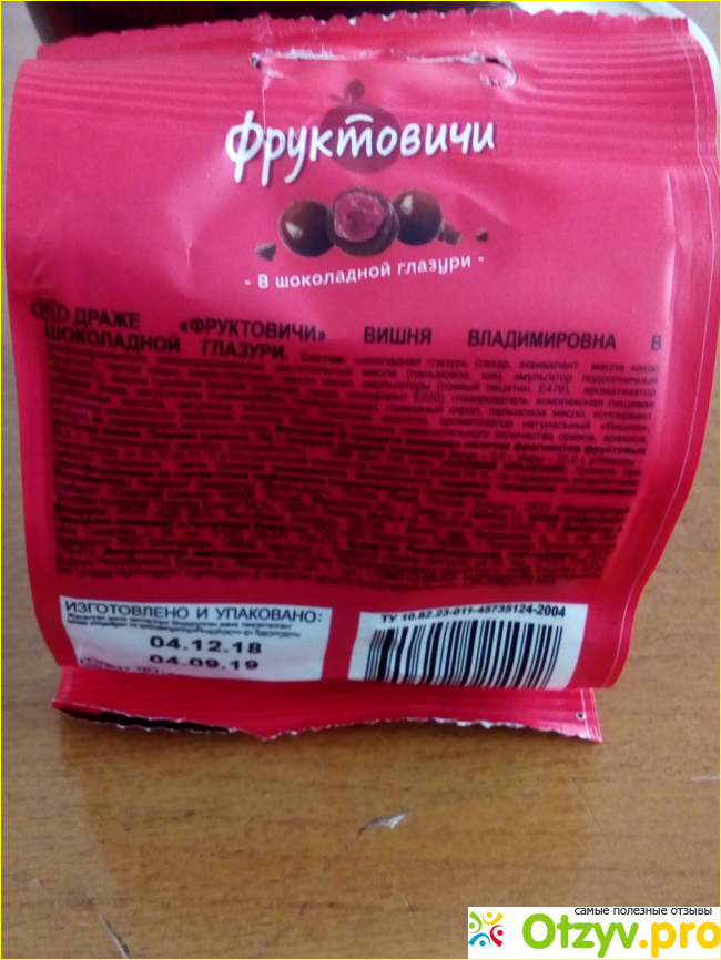 Также на упаковке указано количество содержимого - 50 граммов. В эти граммы входит всего 18 - 20 горошин, но вкус у них потрясающий. Мне нравятся все десерты этой линейки, но вишня больше всего, так как эта ягода растёт в нашей полосе России.