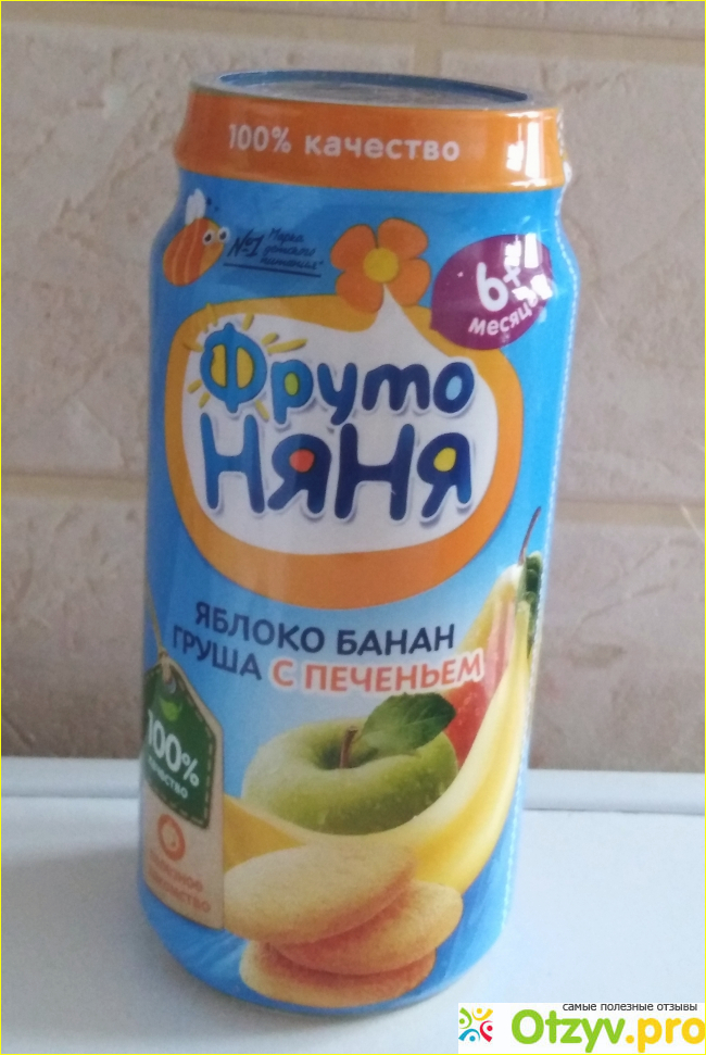 Хочу рассказать о фруктовом пюре от ФрутоНяни. Продукцию ФрутоНяни мой малыш полюбил сразу. Это фруктовое пюре с с яблоком, бананом, грушей и печеньем, мы попробовали впервые.